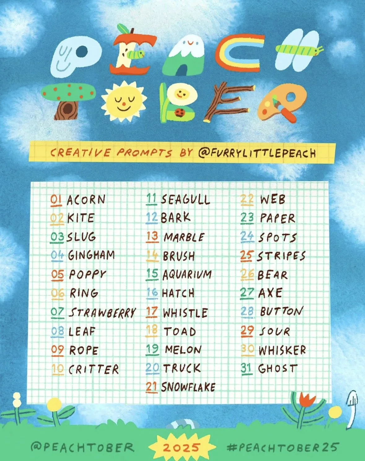 A prompt list created by FurryLittlePeach that inspires thousands of artists to create an artwork a day throughout October.