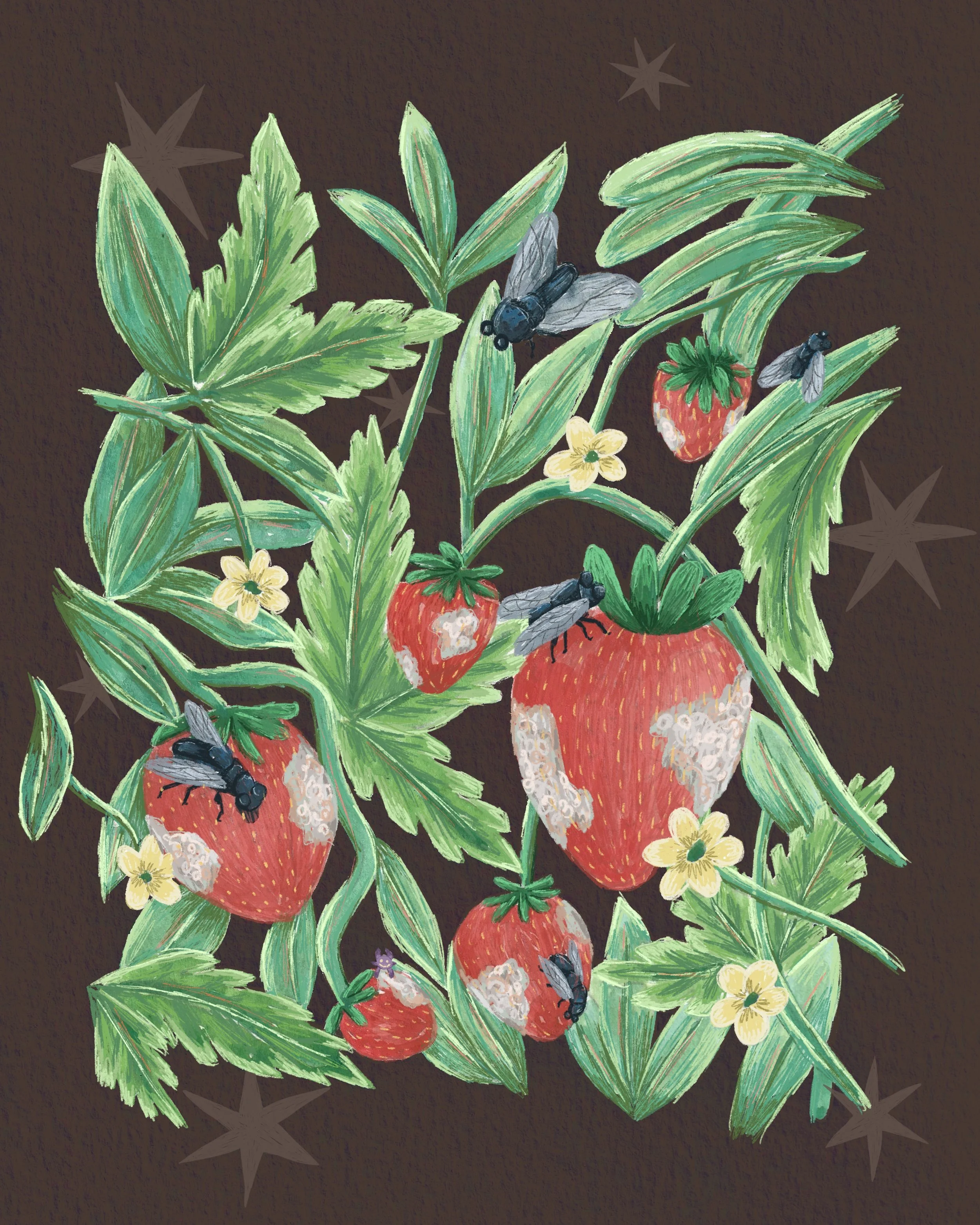 Day 7: strawberry These rotten strawberries are a mystery how they rotted on the bush.